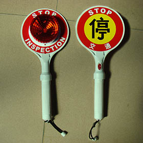 手持式交通停字牌:電池式停字牌配電池使用,也有直接沖電LED閃示燈,有“交通”“公安”兩種字樣。前面有反光性能,后面為燈,警示性強。